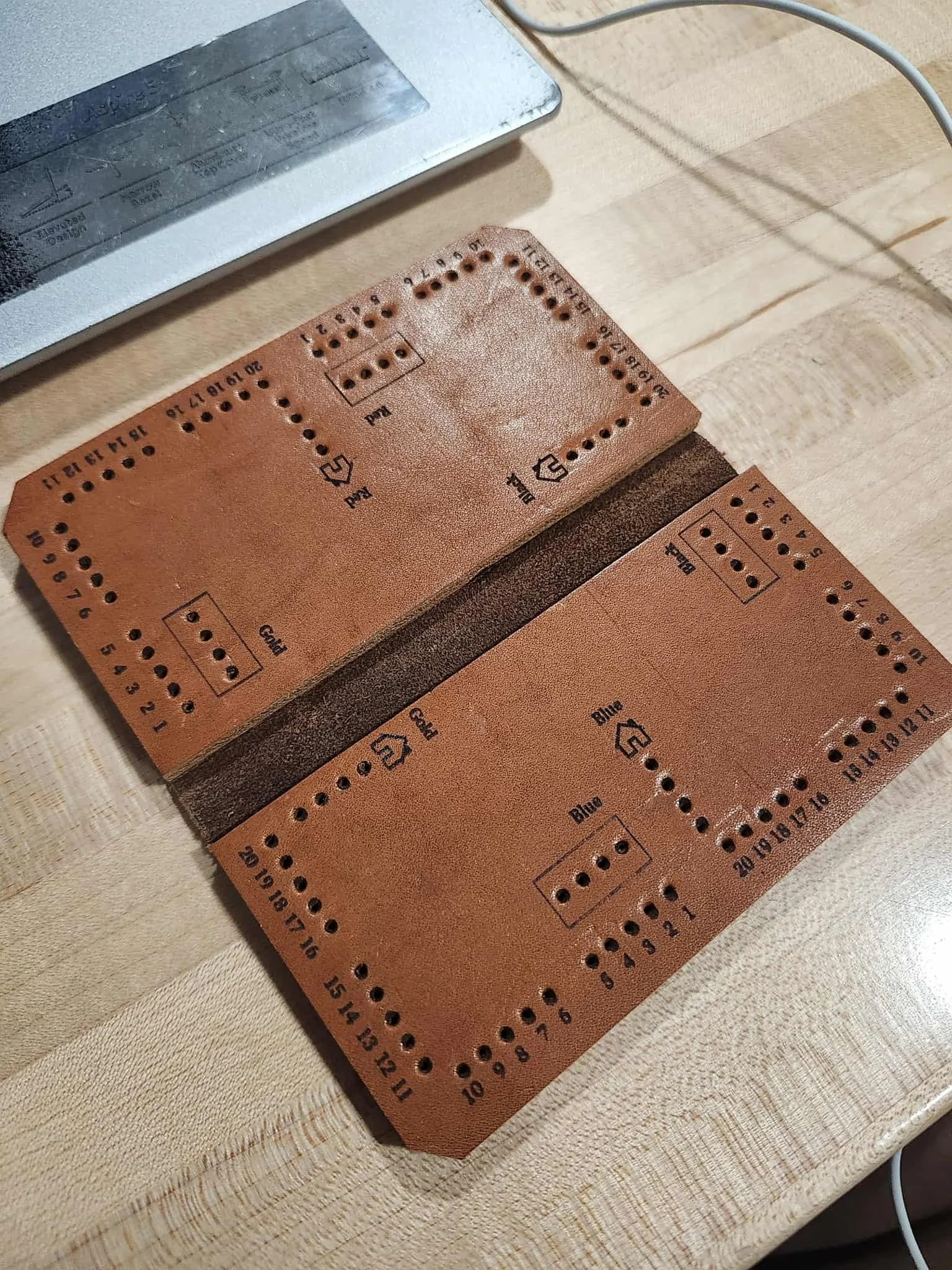 All products are made upon order I appreciate your patience-Grant Shop Envelope Card Poke $30.00 2 Deck Poke $60.00 Tock Board $70.00 Long-stitched Journal $40.00 Guitar Strap $30.00 Notebook Sleeve $50.00 Traveler 3 track Cribbage Board $85.00 Traveler 2 Track Cribbage Board $70.00 Card Poke $50.00 Engraving Sale Price: $10.00 Original Price: $30.00 Sale